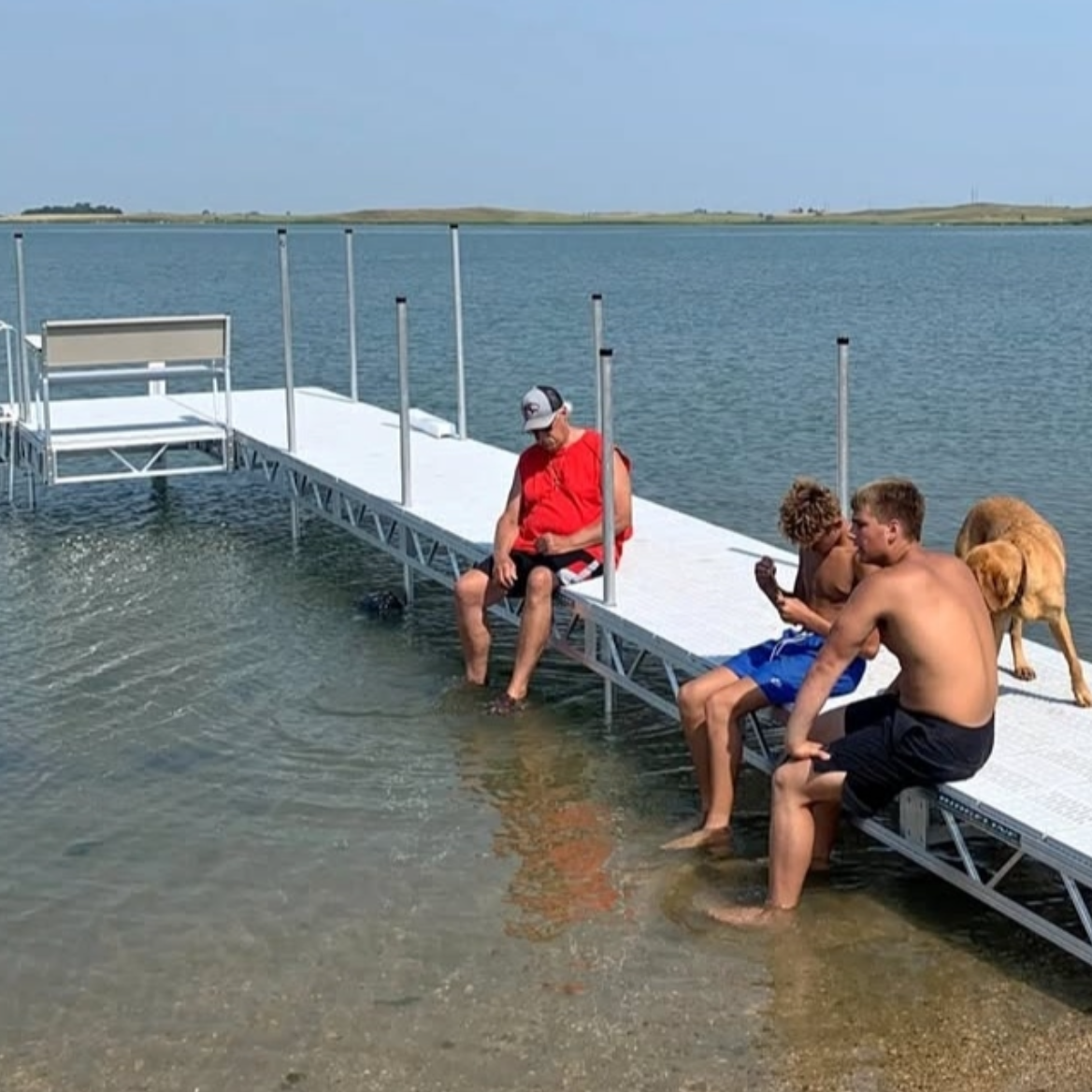 Easily load, carry and assemble the dock configuration that suits your shoreline – it’s the weekend warrior’s dream lakeshore project. All the hardware, legs, decking panels and wheels are banded into the frame – it ships complete. We recommend starting with our most popular (5) section kit, which provides a great start point and the best “bang for your buck”. The Kit Dock is a modular design, so you can always add sections and easily change up your configuration.